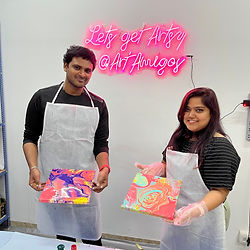 Learn the Abstract art of Fluid Pour. This course is designed in such a way that you get to learn varied Techniques of Fluid art on different surfaces with the best knowledge of the medium. Let's have a Fun Therapy session together. You would be creating your very own fluid art to take home. Our Kit Includes: 1. Rectangle Canvas(10”x10”) 2. Four shades of paint 3. Disposables 4. Apron & Gloves Along with some snacks and drink! Not an artist do not worry this is going to be an art therapy and you will definitely love your end product. All you need is enjoy with us in the process of making this beautiful art piece...!!! @_artamigos